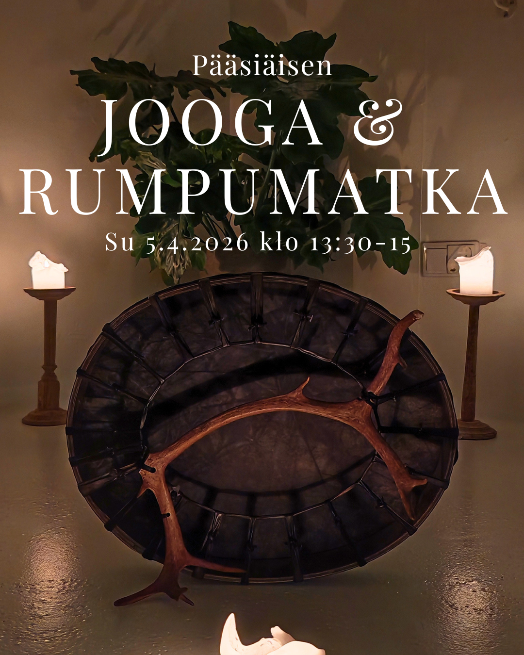 Rauhoitamme mielemme liikemeditaatiolla, avaamme kohoa lempeillä joogaliikkeellä ja valmistaudumme lepoon, jotta mielemme saa lähteä vaeltamaan rummun saattelemana.